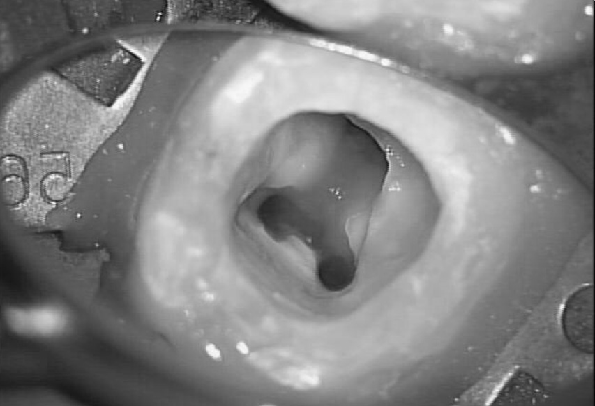 最近ではこの問題を解決する方法があります。それが顕微鏡を用いた治療です。当クリニックの顕微鏡は術野を2倍から34倍に拡大して確認することができ、狭くて暗い部位には顕微鏡から高照度のライトを当てることにより、明るくすることができるようになりました。